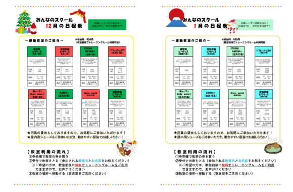 ≪みんなのスクール 12~1月の開催スケジュール≫