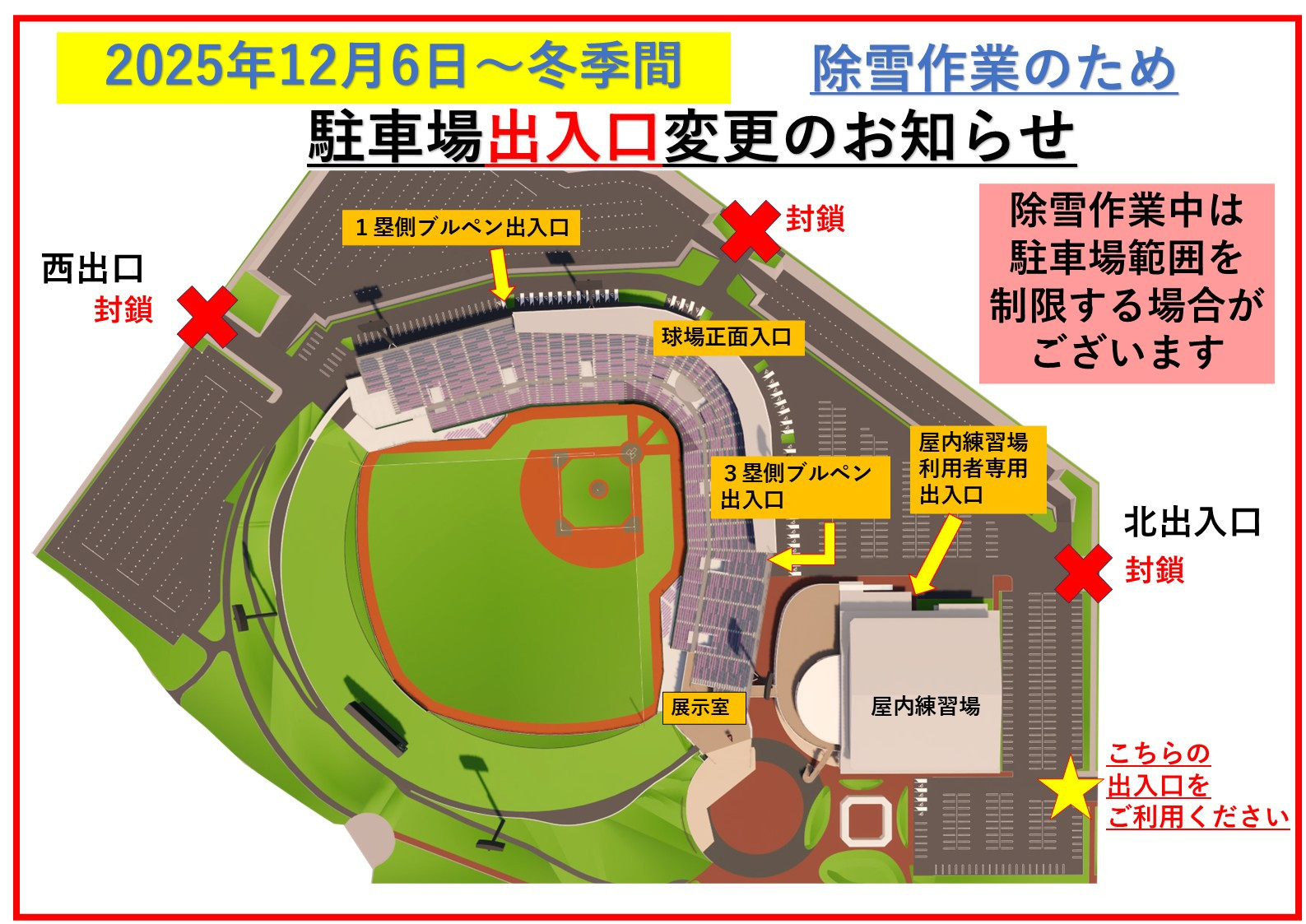 12/6(月)~ 冬季間 駐車場出入口変更のお知らせ