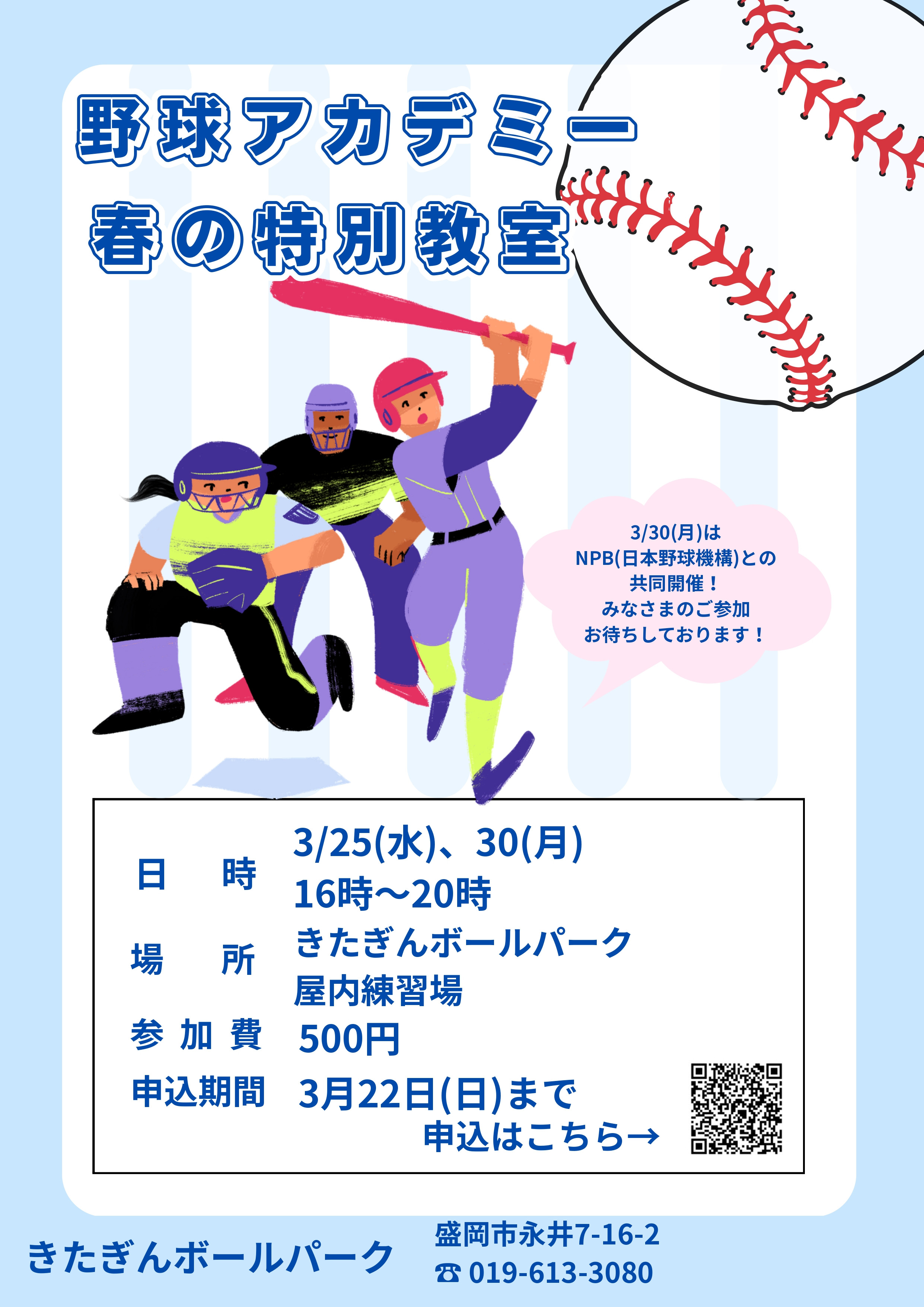 いわて盛岡野球アカデミー 春休み特別練習会開催のお知らせ